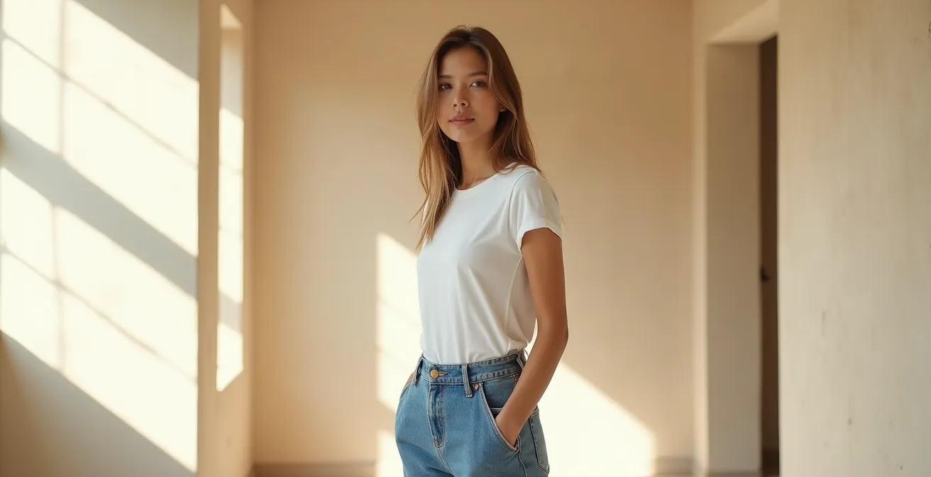 L’équation semble universelle : un jean bien coupé, un t-shirt blanc immaculé. C’est la toile de fond de la garde-robe moderne, une promesse de simplicité et de confort. Pourtant, sur certaines femmes, cet uniforme basique dégage une aura de sophistication déconcertante, une élégance qui semble innée. Sur d’autres, il reste désespérément… ordinaire. D’où vient cette différence ? La réponse conventionnelle, martelée par les magazines, consiste à accumuler des pièces fortes : un sac de créateur, des chaussures spectaculaires, un trench parfaitement ceinturé. Ces conseils, bien que valables, manquent l’essentiel.